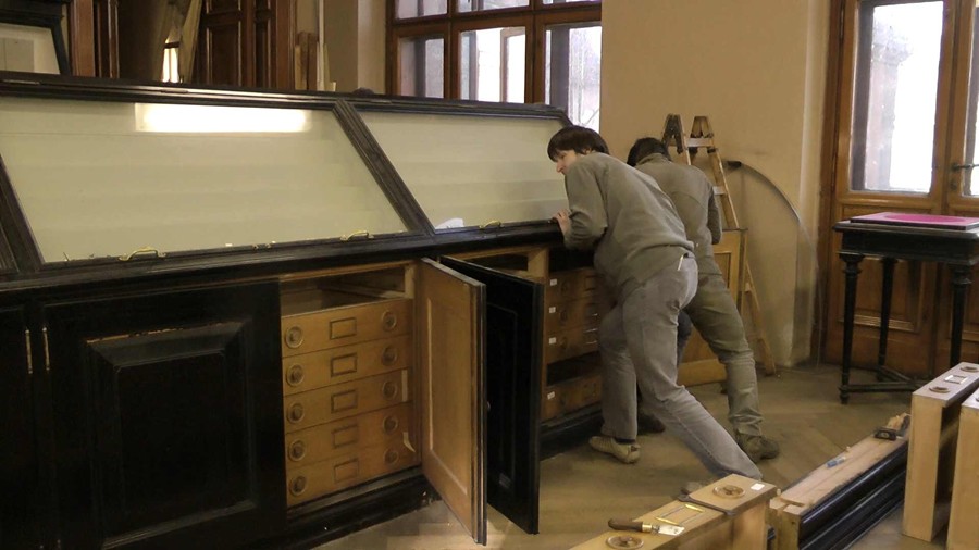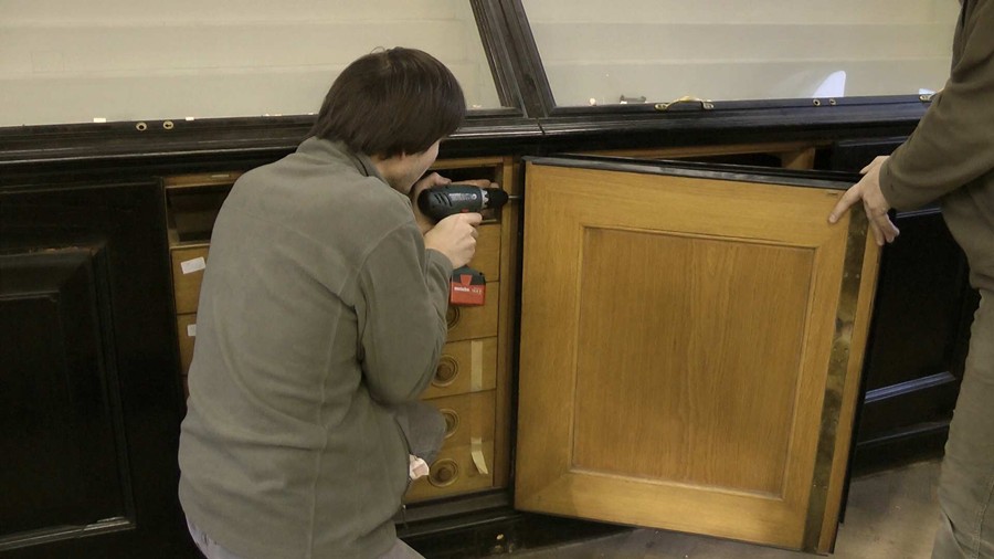 Rozpojit je nebylo vůbec jednoduché. Vitríny, ač na pohled stejné, byly vyrobeny v několika dílnách a jejich provedení se lišilo. Každá řada vitrín byla proto malým oříškem.