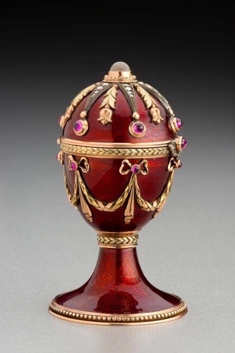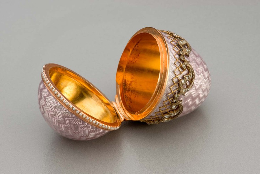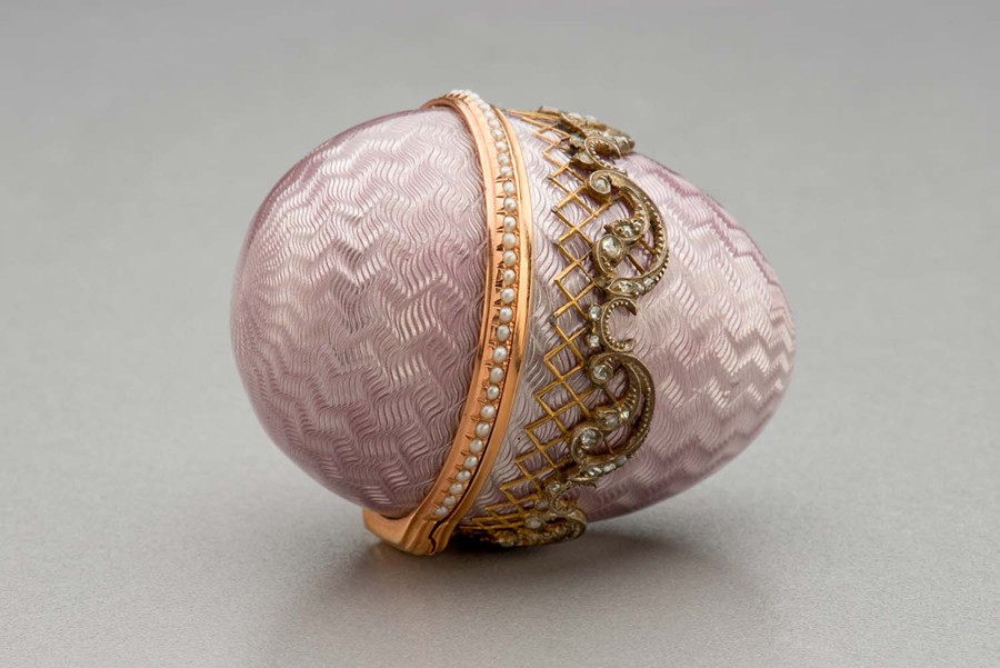 Fabergého vejce, Michail Evlampievič Perchin, fa Fabergé, konec 19. století, Rusko. Na výstavu Peníze do Národního muzea zapůjčilo Uměleckoprůmyslové museum v Praze