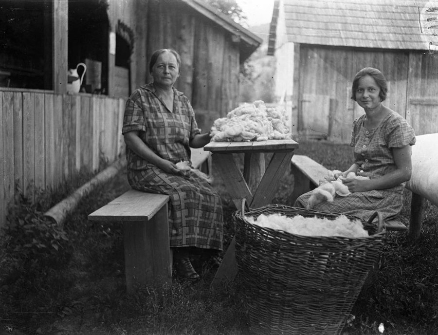 Ruční čechrání ovčí vlny. Nový Hrozenkov