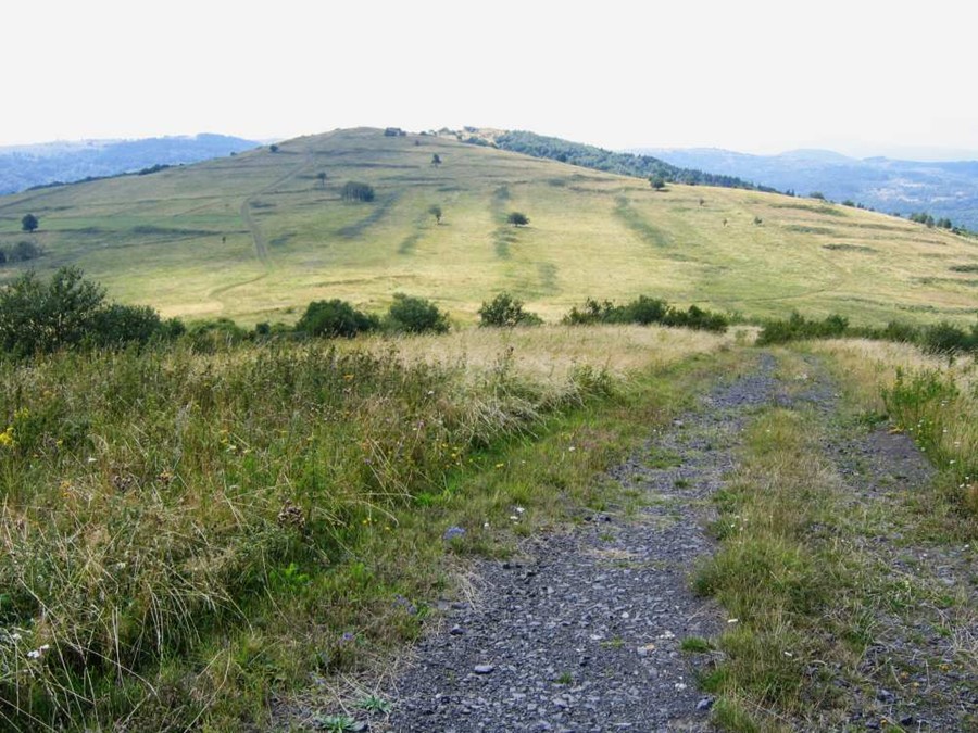 Meze zaniklých polí z poloviny 20. století se rýsují v trávě na hřebenech Doupovských hor