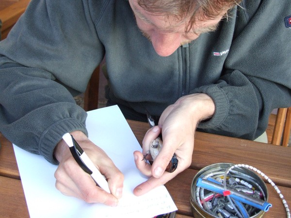 Jaroslav Cepák z Kroužkovací stanice Národního muzea zapisuje zjištěné údaje