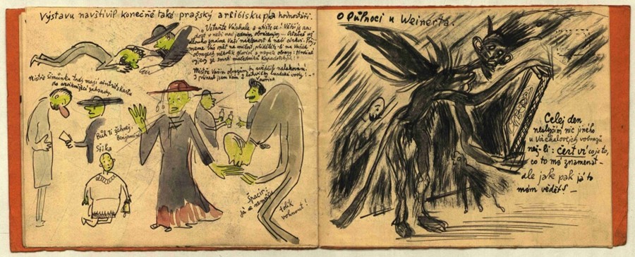 Josef Váchal – Historické popsání Vesuvu aneb Památník Volného Sdružení Neodvislých výtvarníků slovem a obrazem jednoho oučastníka zaznamenaný pro věčné časy a k výstavě, 1919. 20 listů.