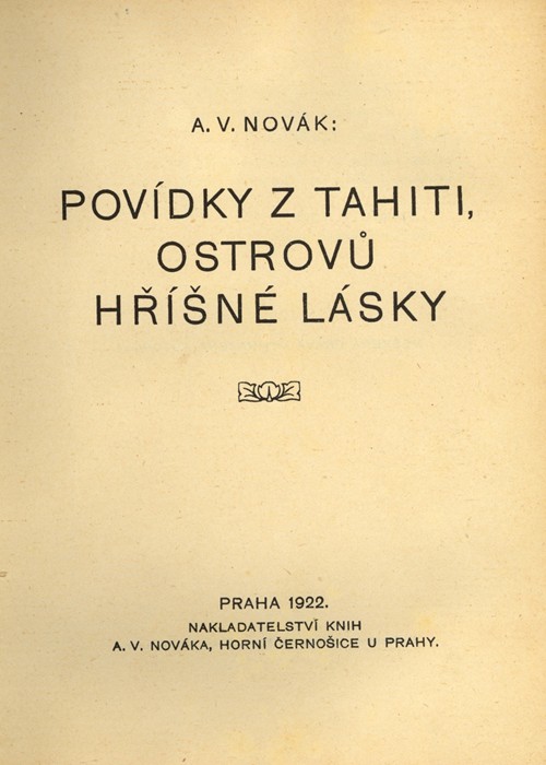 Titulní list prvního vydání Novákovy nejúspěšnější knihy „Povídky z Tahiti, ostrovů hříšné lásky“ (1922). (zdroj: Národní muzeum)