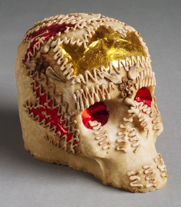 Lebka z cukrové hmoty, dušičkový dárek Mexiko, 20. století (zdroj: Národní muzeum)