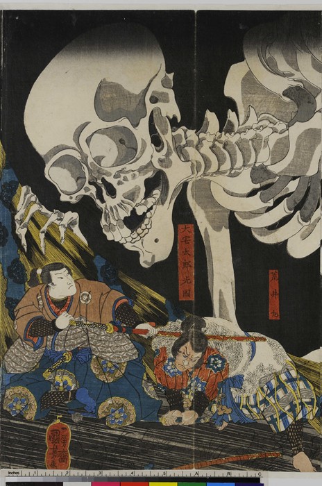 Kunijoši (1797–1861). Takijaša, dcera Tairy no Masakady vyvolává kostlivce