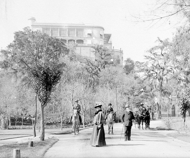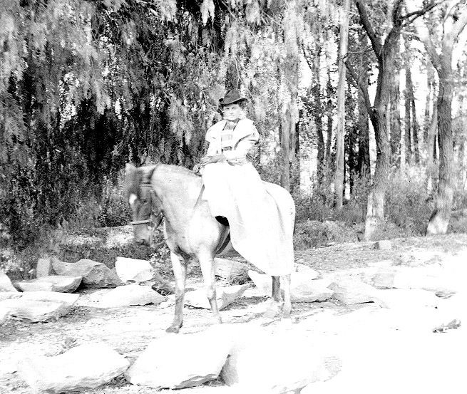 Vlasta na koni na projížďce v parku u zámečku Chapultepec