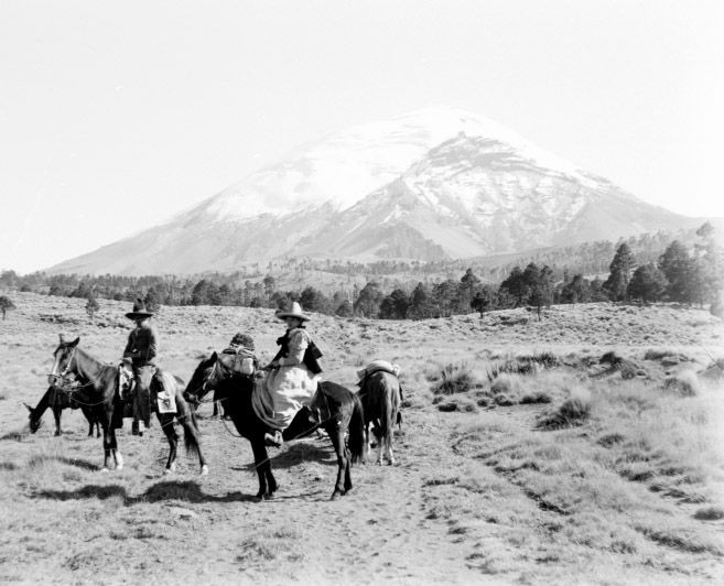 Vlasta s průvodcem na koních před výstupem na Popokatepetl