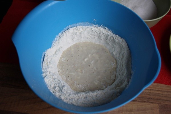 Zaděláme kvásek a necháme asi 15 minut lehce nakynout.