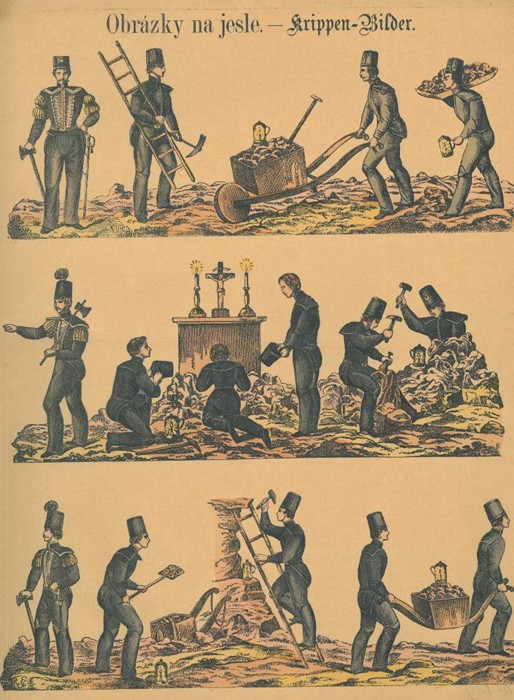 Hornický papírový betlém z Příbramska, polovina 19. století (zdroj: Národní muzeum)