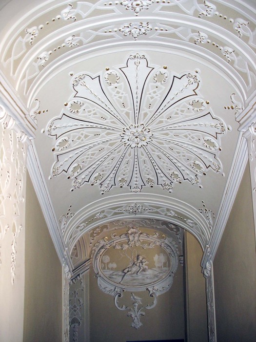 Barokní štuková výzdoba schodiště kunratického zámku