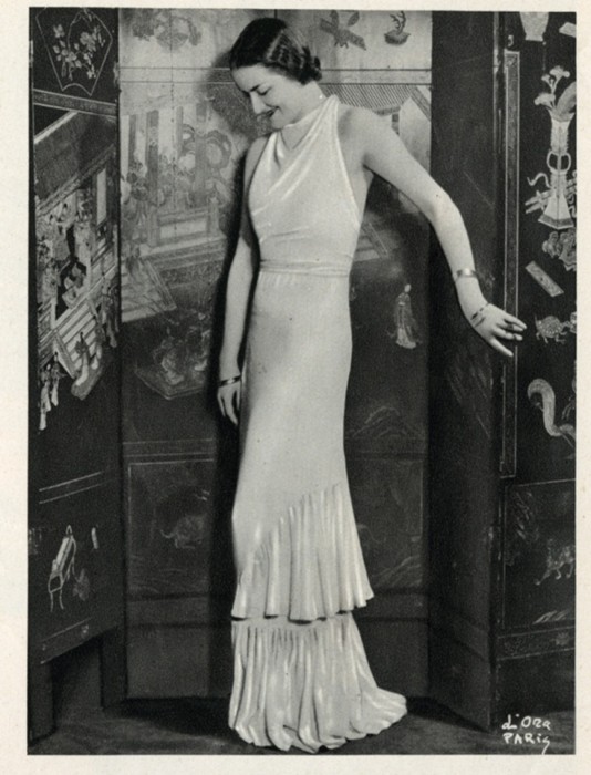 Francouzská inspirace pro společenské šaty, uveřejněná v časopise Eva, r. VII, č. 6, 15. 1. 1935 (zdroj: Národní muzeum)