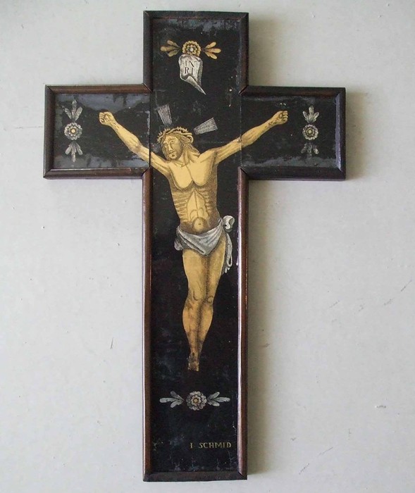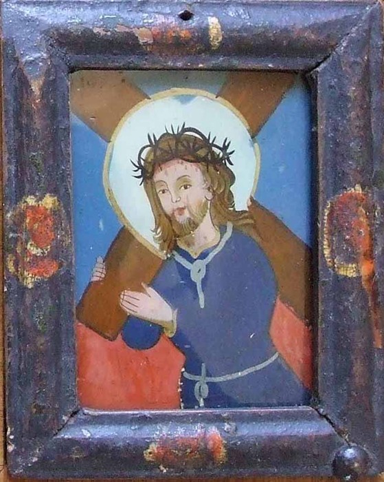 Ježíš nesoucí kříž. Obrázek patří ke skupině obrázků které se malovaly v řemeslných dílnách v Augsburku. Pochází z období 1800 – 1850. Zdroj: Národní muzeum