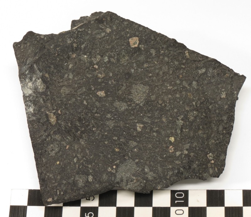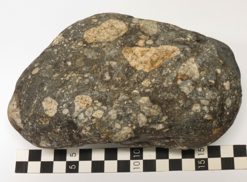 . Tato impaktní brekcie pochází z jižního Norska z kráteru Gardnos, který má v průměru přibližně 5 km.