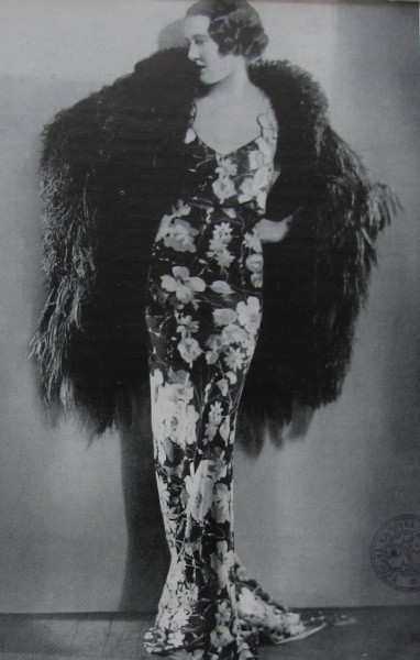 Večerní toalety z imprimé krepdešínu, model Molyneux Paříž, 1934.