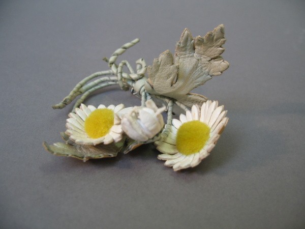 Textilní brože se mohly připnout nejen na oděv ale i na klobouk.