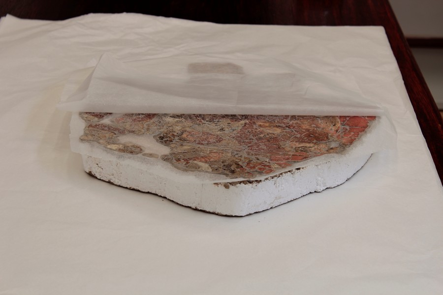 Freska byla opatřena druhým přelepem japonským papírem