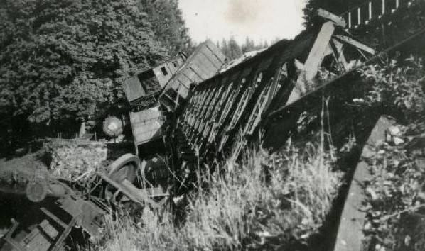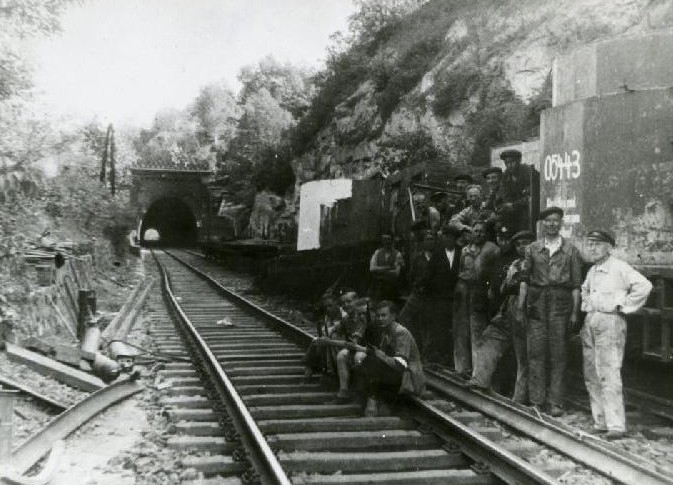 Most zničený partyzány na klíčové trati mezi Brnem a Jihlavou. Duben/květen 1945