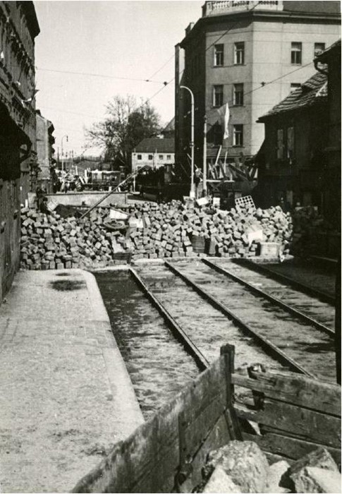 Barikády na Paloučku v Praze Nuslích. 6. 5. 1945