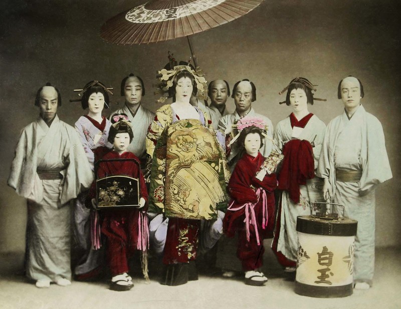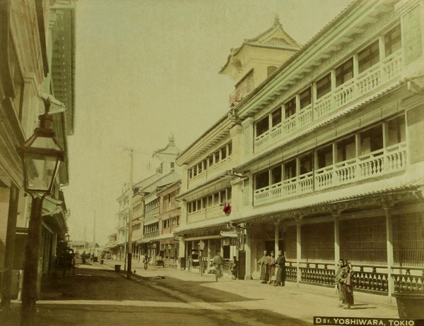 Jošiwara v Tokiu, černobílá, ručně kolorovaná fotografie, neznámý fotograf. Zakoupeno patrně v roce 1906, sbírka Joe Hlouchy. Zdroj: Národní muzeum