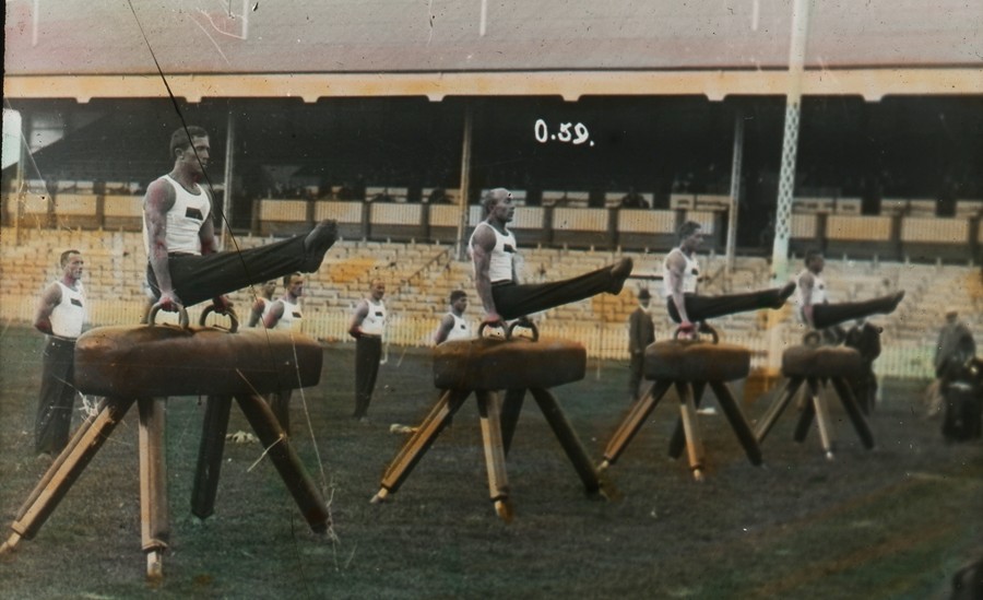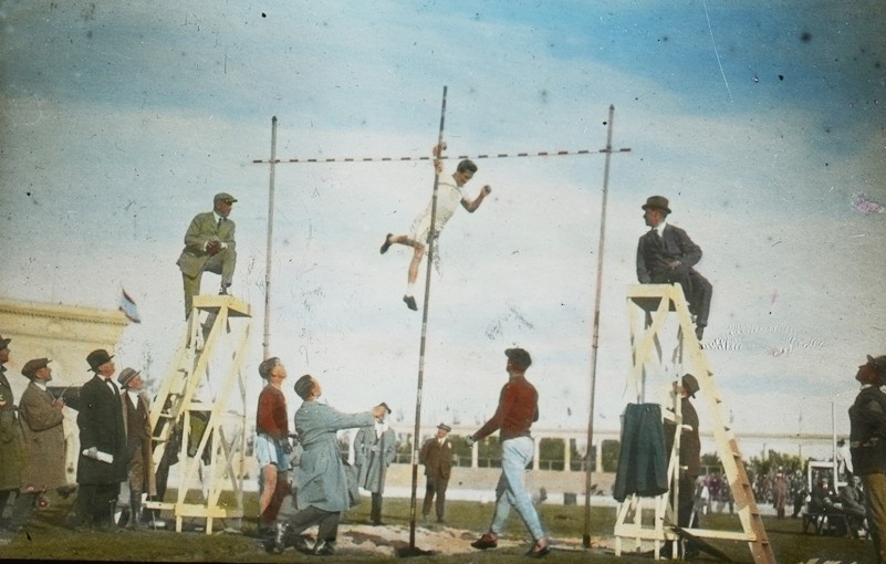 Frank Foss při skoku o tyči. Zdroj: Národní muzeum