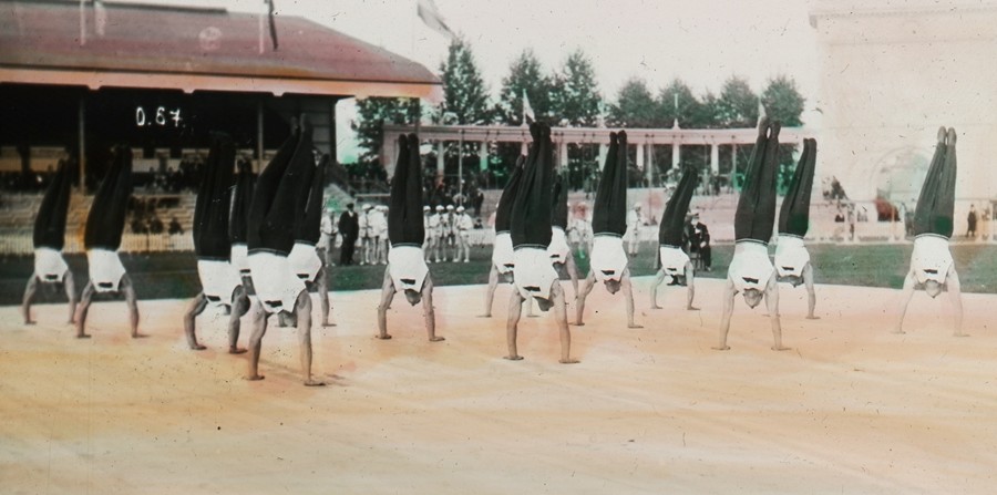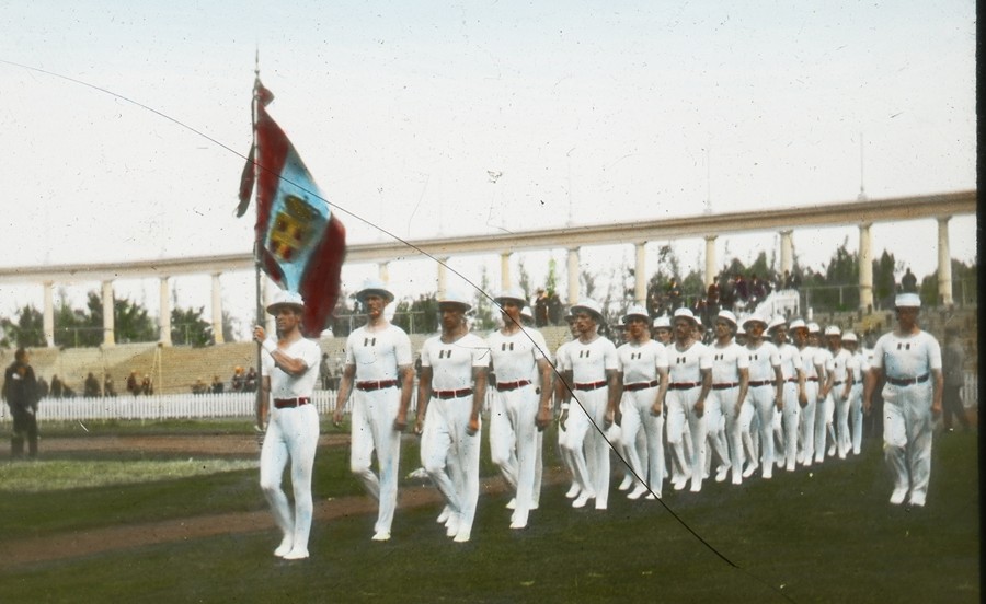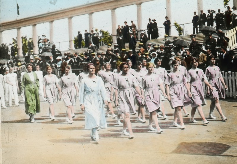 Slavnostní nástup. Švédské gymnastky. Zdroj: Národní muzeum