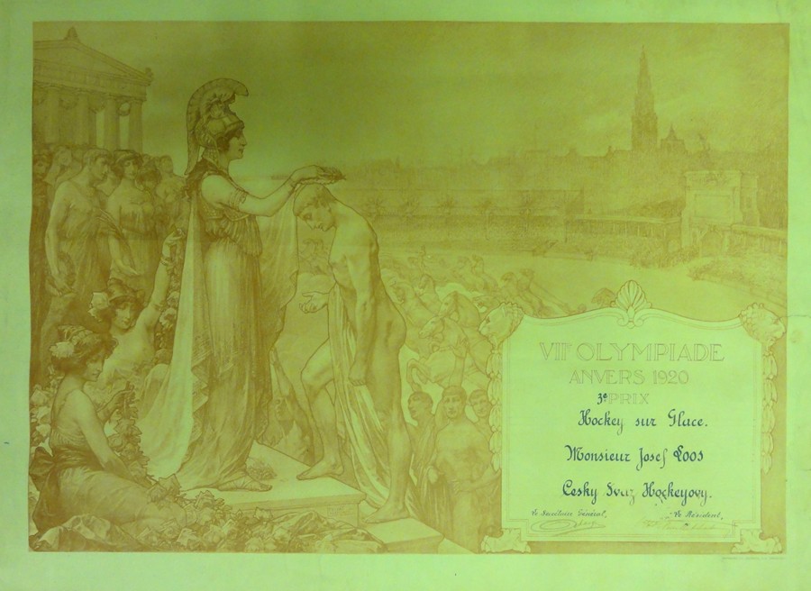 Diplom z OH 1920 pro Čsl. hokejový svaz