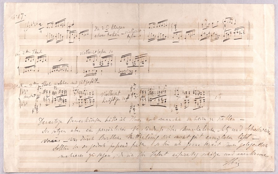Návrhy úprav Smetanových lístků do památníku od Franze Liszta – příloha k jeho dopisu Smetanovi z 12. 4. 1854, NM-MBS S 217/710
