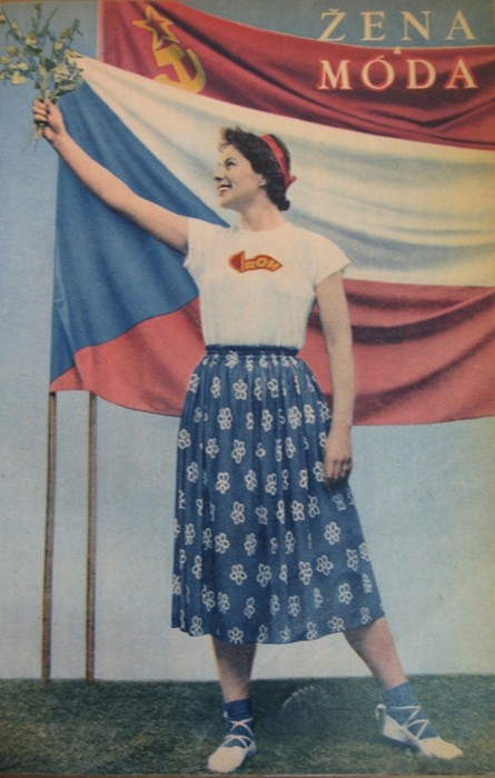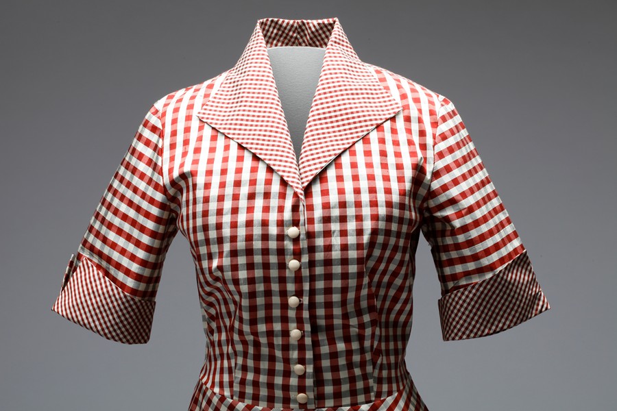 Oblíbenými vzory na šatech byly puntíky, květiny a kostky.