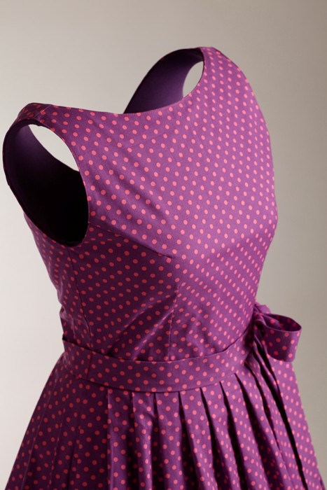 Šaty puntíkaté s nabranou sukní v retrostylu 50. let, potištěná bavlna, Reparáda, 2016. (Reparáda)
