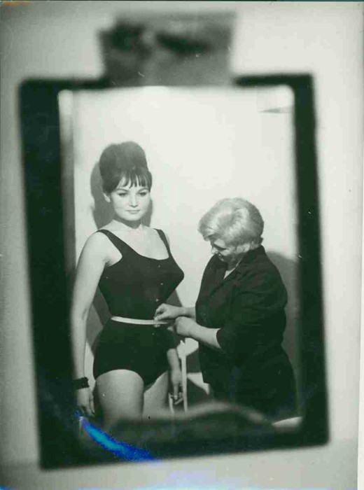 Šaty pro družičku blankytně modré, silon, polyamidové vlákno typu 6, krejčová paní Medlová, neurčený bratislavský módní salon, 1961–1962