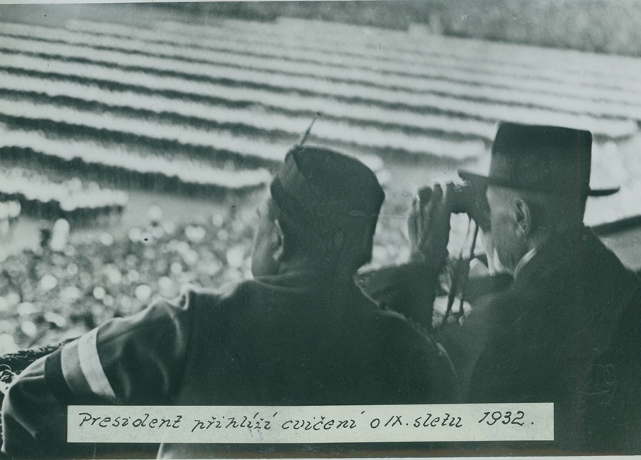 Prezident přihlíží cvičení na sletu v roce 1932