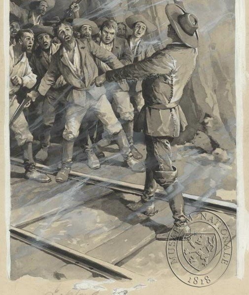 V tunelu; May, K.: Poklad ve Stříbrném jezeře. Praha : Alois Hynek, 1904