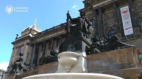 V pozadí fontány Národní muzeum, které prochází celkovou rekonstrukcí.