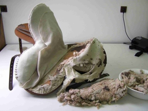 Přední pohled na sedlo před restaurováním (foto: Adéla Skoupá)