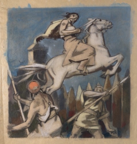 Studie Adolfa Zábranského k ilustraci pro knihu Ivana Olbrachta Ze starých letopisů. Vydalo SNDK v roce 1952 v edici Knižnice pro střední školy. Pastel.