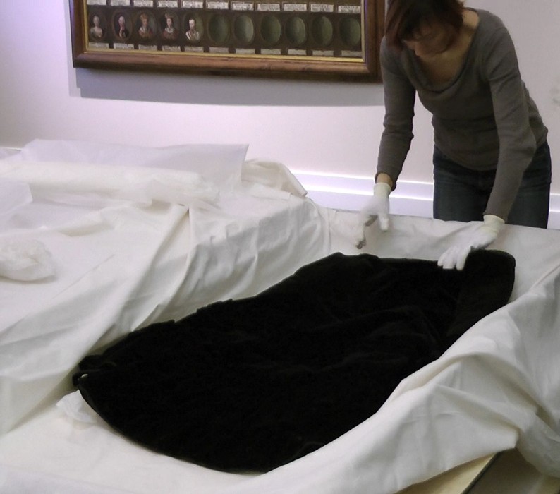 Vybalování šatů císařovny Sissi z transportní krabice
