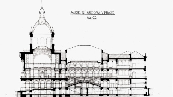 Příčný řez budovou - plán Josefa Schulze (foto: archiv NTM)