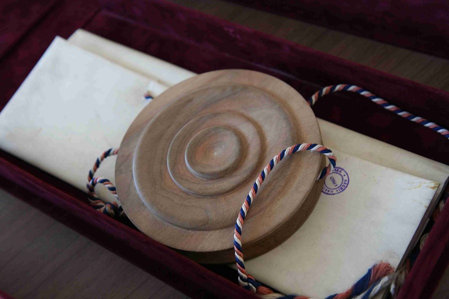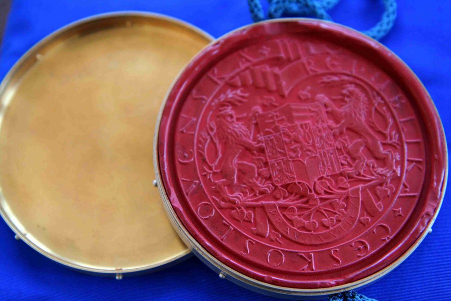 Pečeť v dřevěném pouzdře (prezident Emil Hácha)