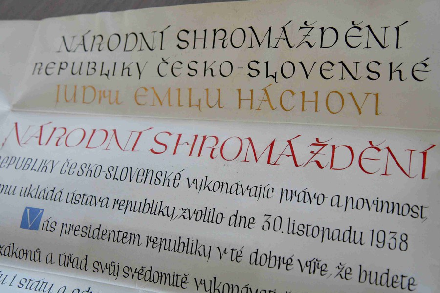 Diplom z roku 1938 (prezident Emil Hácha)