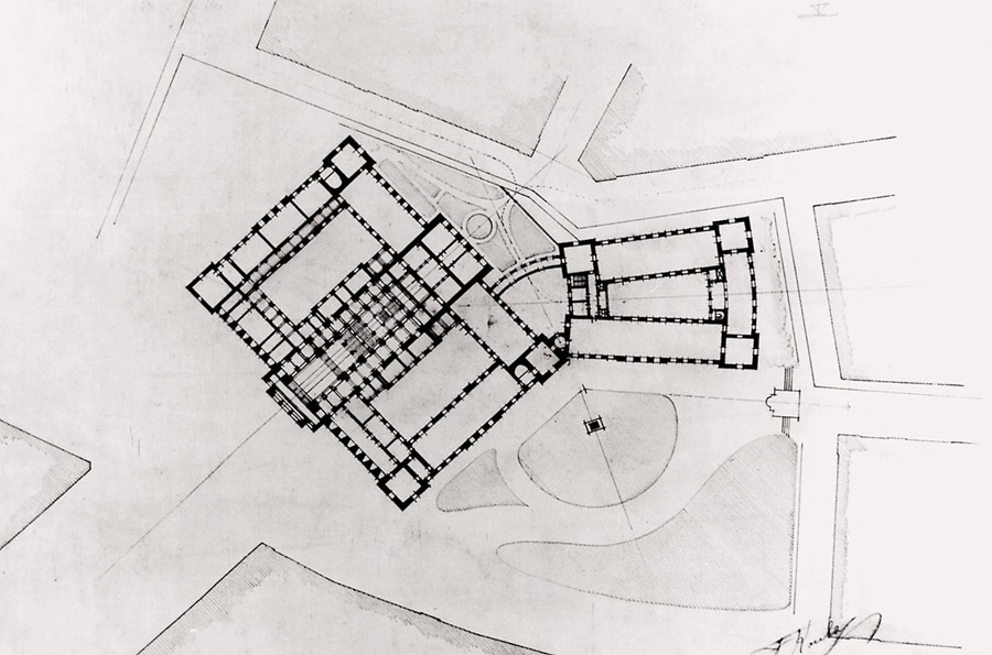 Půdorys návrhu na rozšíření Historické budovy Národního muzea (Jan Koula, 1912-13)