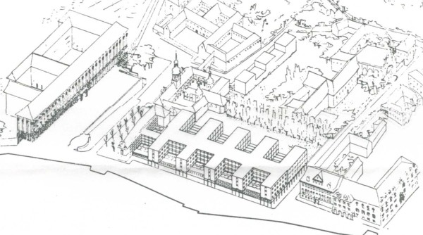Soutěžní návrh Václava Hilského a Karla Koželky z r. 1937 na II. budovu Národního muzea v Praze na Hradčanech vedle Lorety