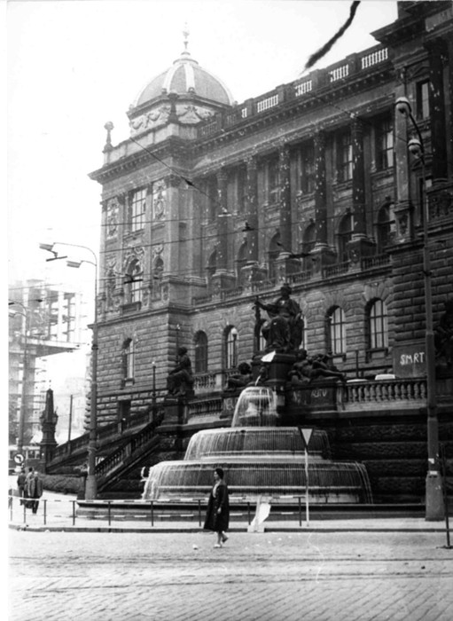 Stopy po střelbě jsou na Historické budově Národního muzea patrné dodnes.